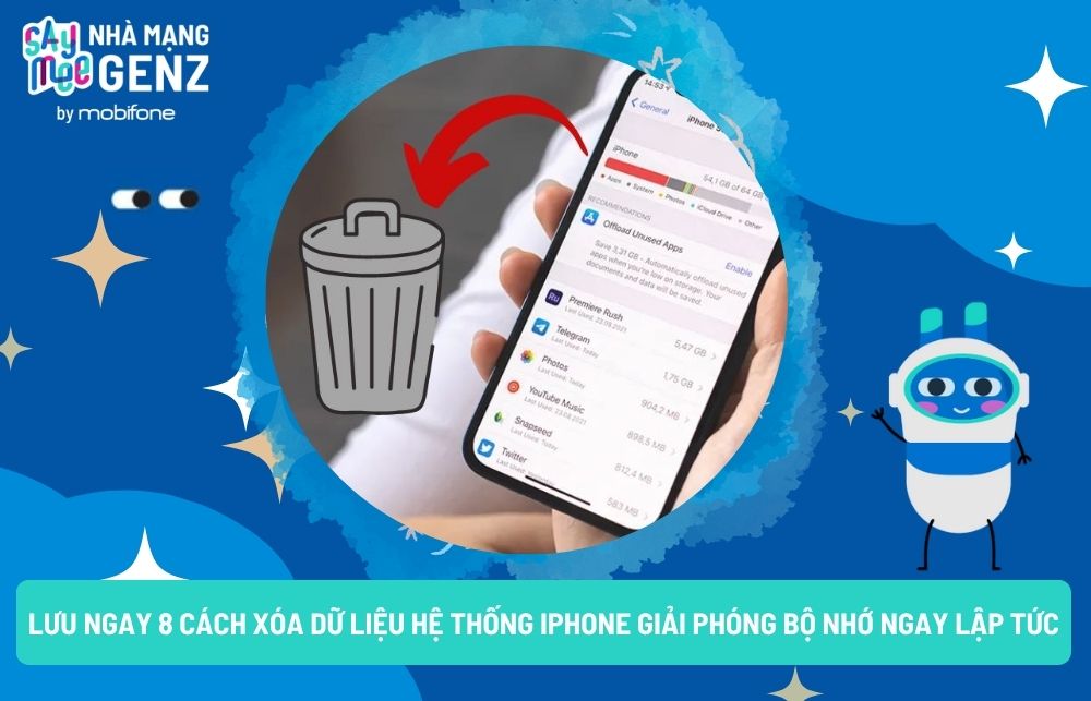 Sau khi biết được dung lượng dữ liệu hệ thống hiện đang chiếm dụng trên điện thoại là bao nhiêu. Nếu nhiều bạn cần thực hiện xóa dữ liệu hệ thống trên iPhone để máy hoạt động trơn tru, giải phóng dung lượng bộ nhớ. Để bạn dễ dàng thao tác, Saymee sẽ hướng dẫn 8 cách xóa dữ liệu hệ thống iPhone như sau:
