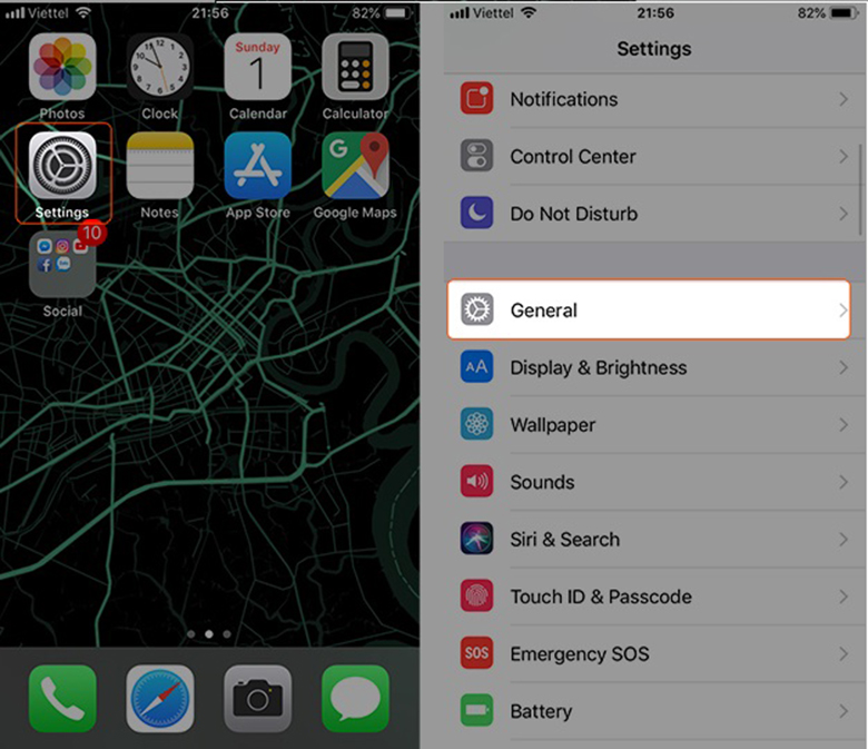 Vào Cài đặt (Setting) => click vào General (Cài đặt chung).Vào Cài đặt (Setting) => click vào General (Cài đặt chung) => Bấm chọn Accessibility (Trợ năng) => click vào LED Flash for Alerts (Đèn Led cảnh báo) => Gạt thanh trạng thái sang phải tại mục LED Flash for Alerts để bật tính năng này. Tương tự, tại mục Flash on Silent bạn cũng gạt thanh trạng thái sang phải để bật.
