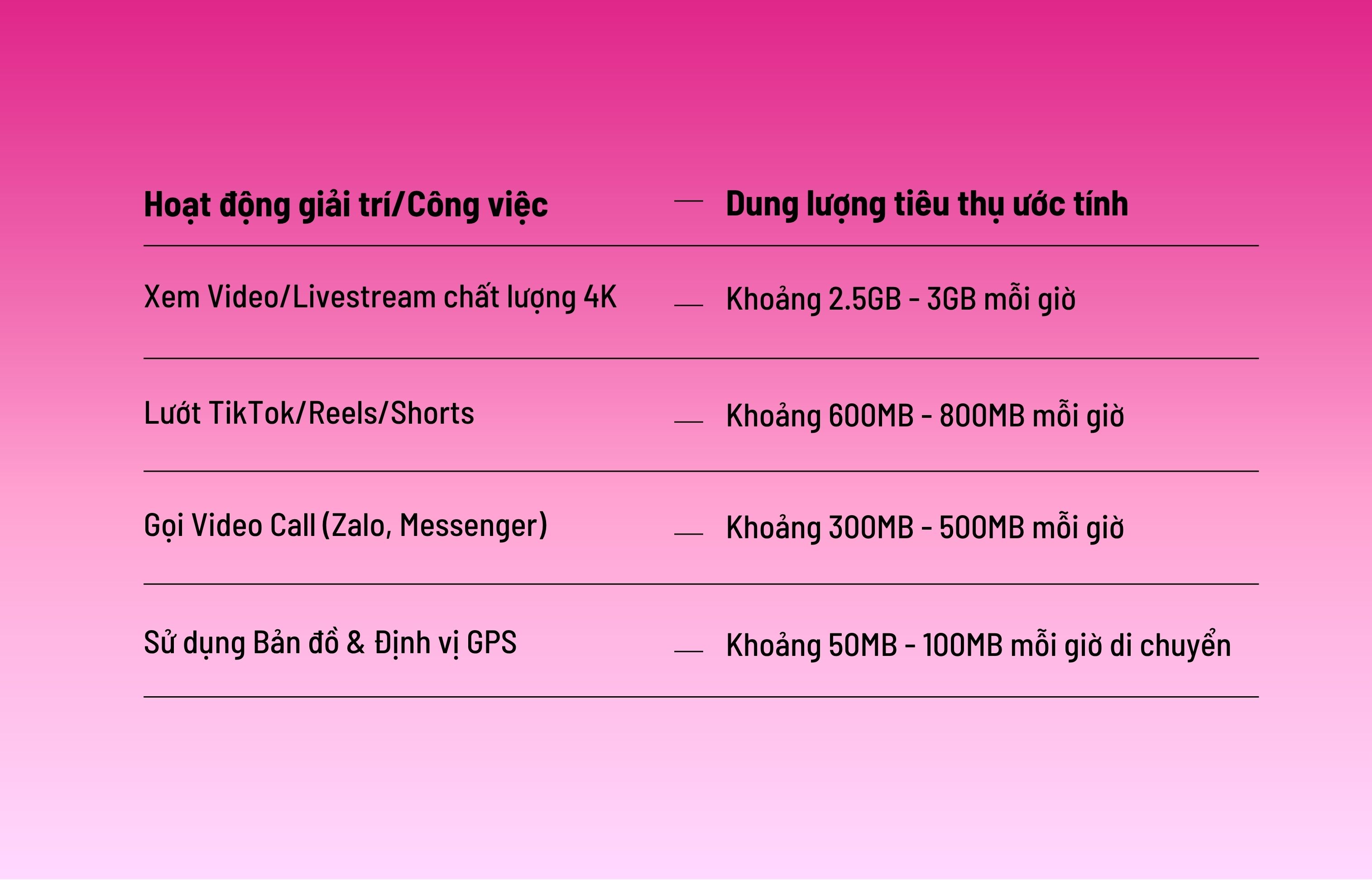 Chỉ cần 2 tiếng xem phim lúc chờ tàu xe và vài lần Livestream chia sẻ khoảnh khắc, bạn đã dễ dàng tiêu tốn từ 6GB - 8GB Data. Đó là lý do những gói cước nhỏ lẻ thường "cạn kiệt" ngay giữa buổi chiều, khiến bạn rơi vào thế bị động.